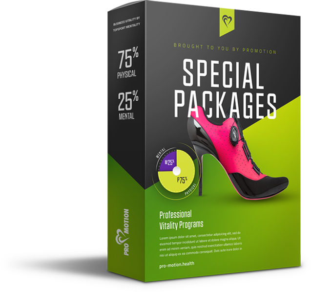 Pro-Motion biedt een breed scala aan diensten die erop gericht zijn om een organisatie en de medewerkers in hun kracht te zetten en weer Vitaal te maken. Het 'Vitaliteits Performance Programma' gaat uit van maatwerk is het meest compleet. Maar er kan ook gebruik gemaakt worden van individuele diensten. Die bestaan grofweg uit Vitaliteitsstrategie en Onderzoek, de Vitaliteitsonderdelen ‘fysiek’, ‘mentaal’ en emotioneel-sociaal’, Teamwork en Leiderschapsmodule, zie hieronder het overzicht van producten en diensten